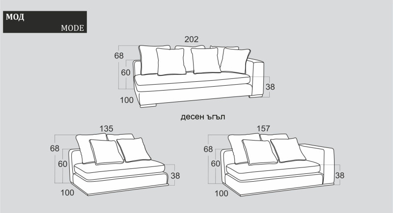 Диваните "МОД" се изработват в няколко размера, с или без подлакътник, като това позволява да се превърнат и в елегантно ъглово канапе "МОД", достойно да заеме място и в най-изискания съвременен дом.