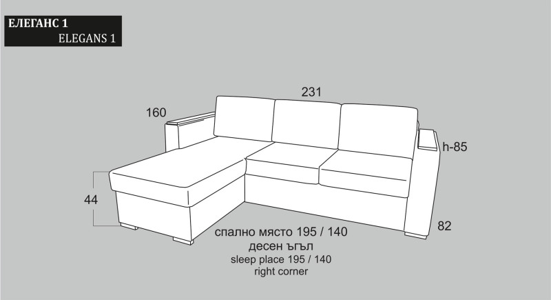Разтегателен ъглов диван "ЕЛЕГАНС-1"